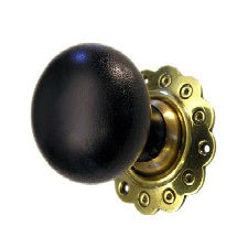 Ebonised Ekki / Polished Brass Door Knob. Suitable for mortice or rim fixing.